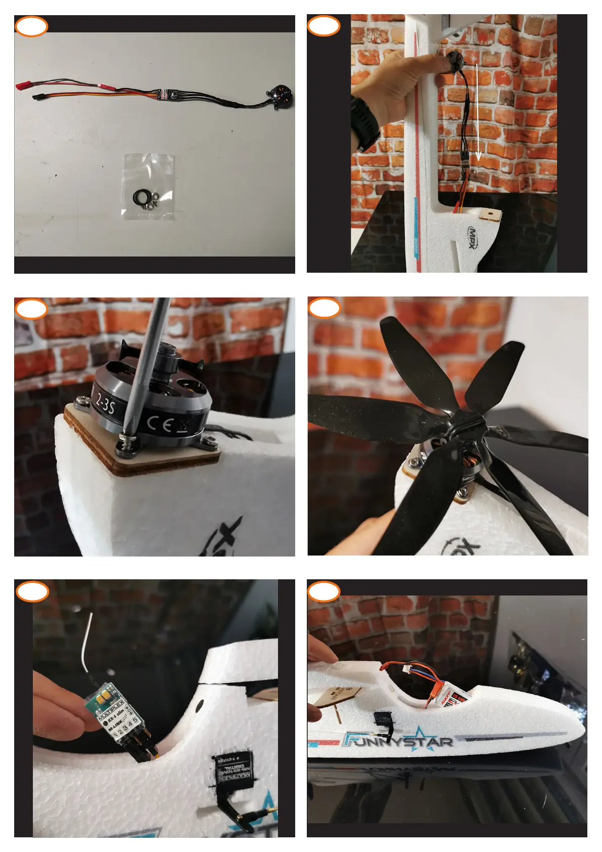 Multiplex FUNNYSTAR - Motor Installation Steps 6.18-6.20; Receiver Installation Steps 6.21-6.22