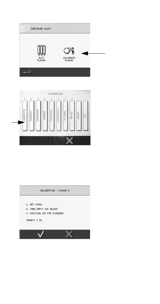 • Select the flavor, water or ice to calibrate.