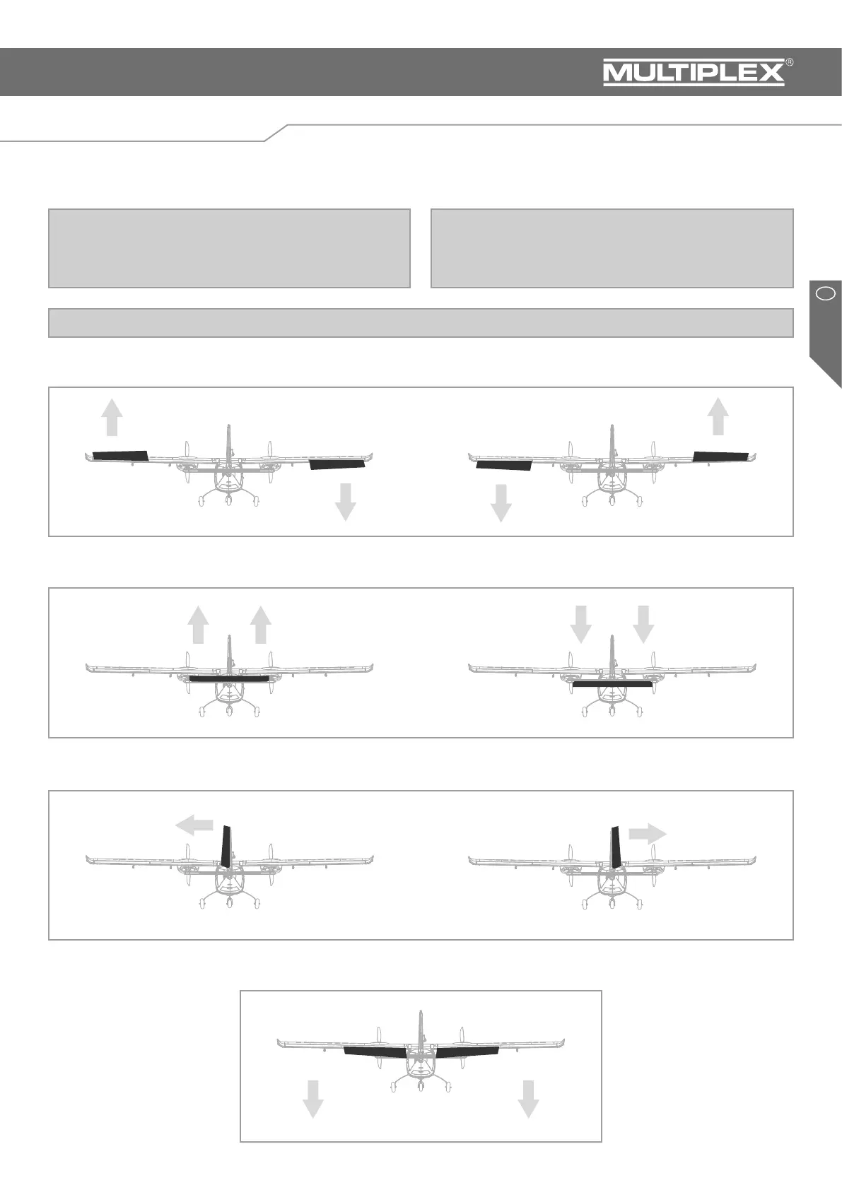 ALWAYS CHECK CONTROL SURFACE DIRECTION FROM BEHIND THE MODEL LOOKING FORWARD TO ENSURE CORRECT OPERATION