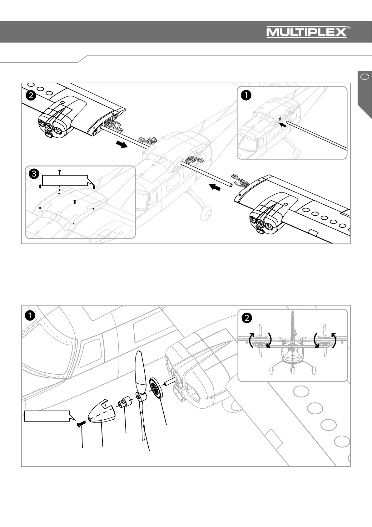 2. Beide Tragächenhälften auf den Holm fädeln, dabei Servokabel bzw.