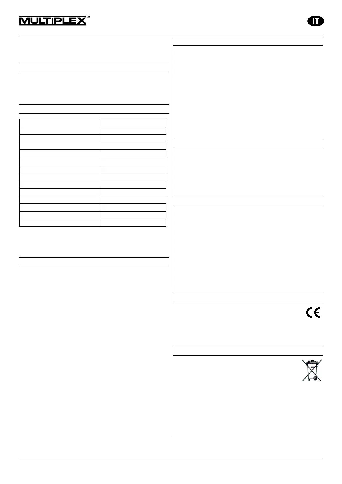 • utilizzo di accessori non originali MULTIPLEX