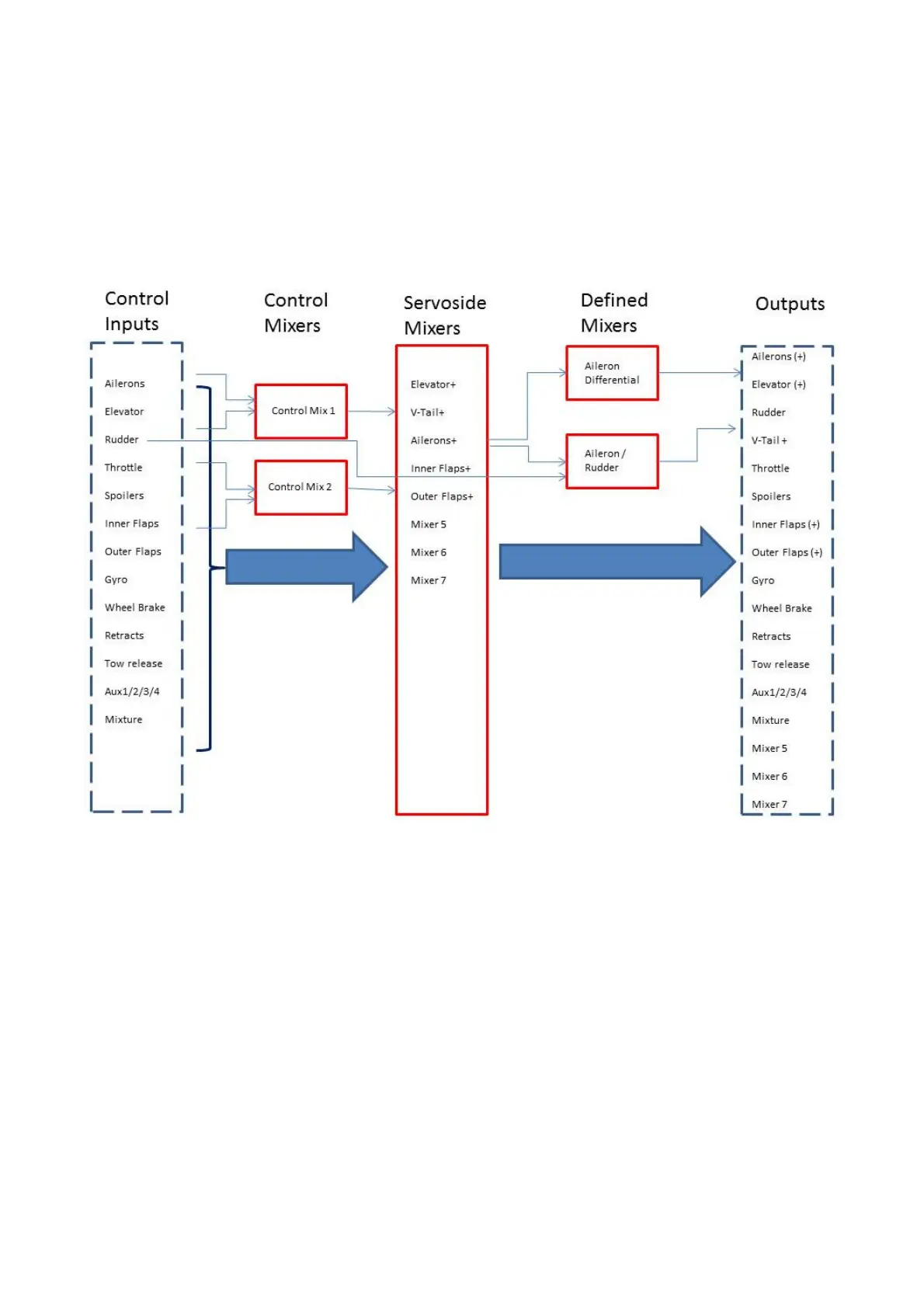 - There are two control mixers which can have two inputs, or a control can be mixed with itself,