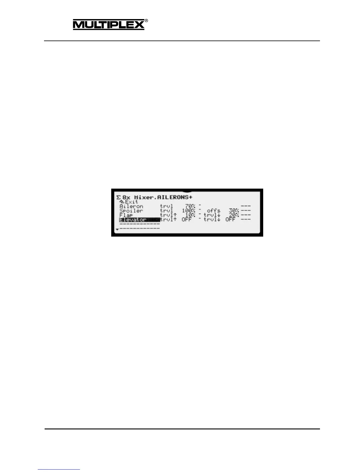 The following example of the AILERONS+ mixer, which is used in the GLIDER++