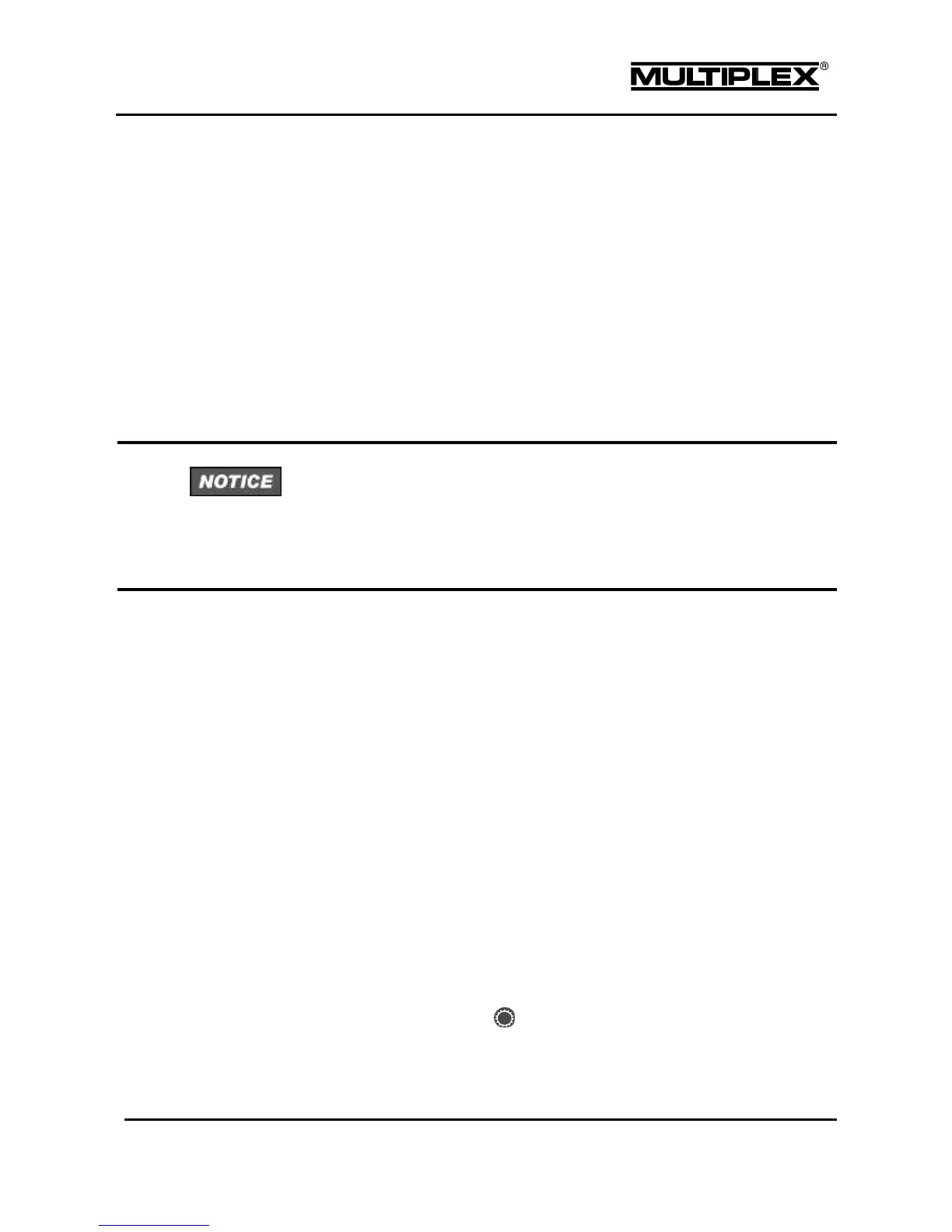 Never reduce the maximum servo travels (P1 and P5) by more than approx. 30%.