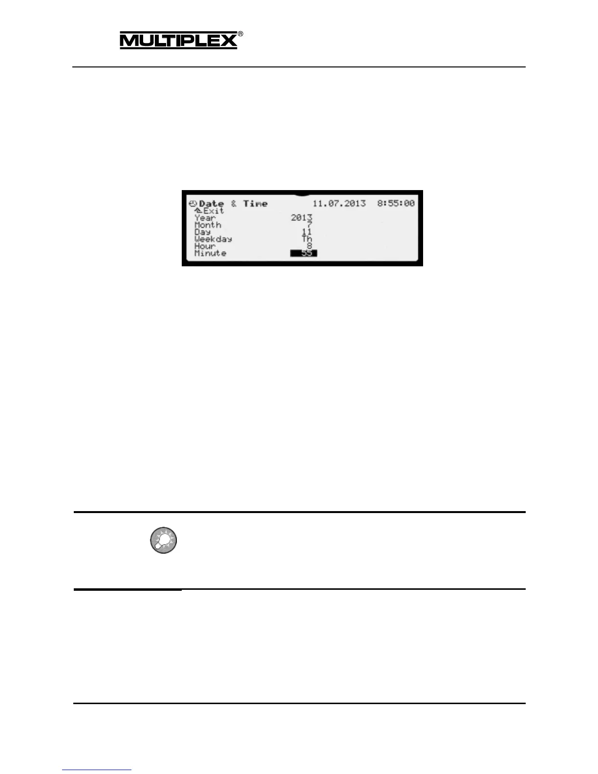 Move the input cursor in turn to the menu items "Year", "Month", "Day",
