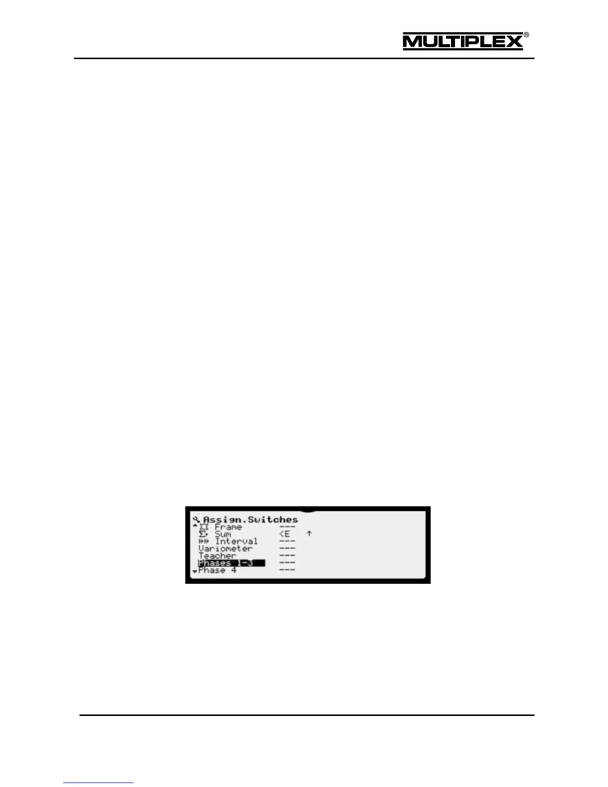 Switches are assigned in the Setup > Assign.Switches menu (see section