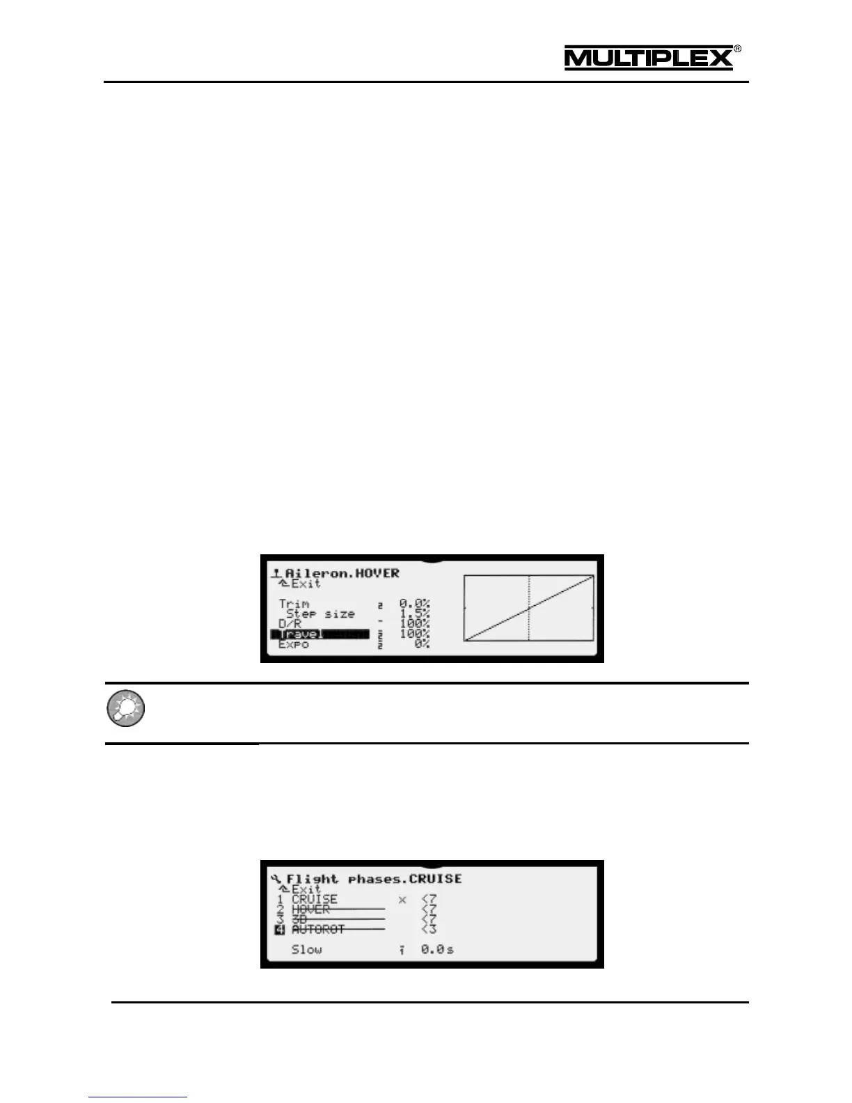 throttle curve for 3D flying). In the control function menus, all settings that can differ