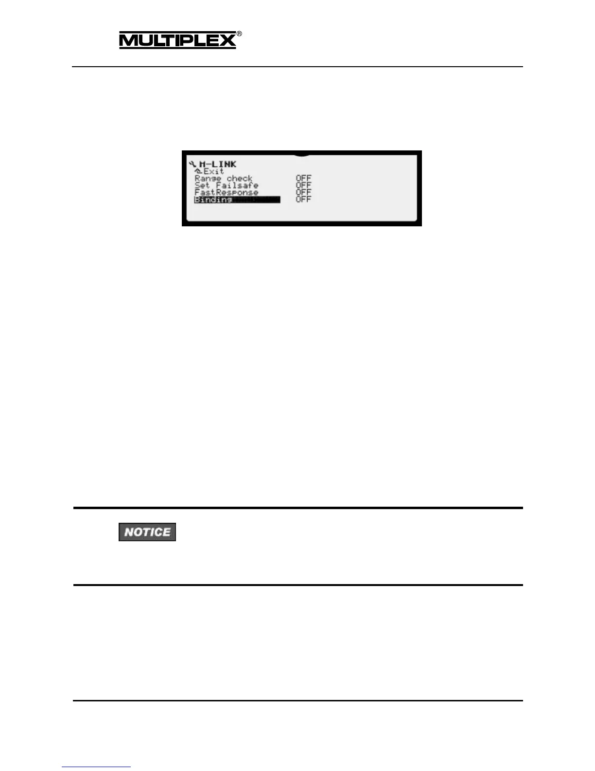 o Check the Failsafe function by switching the transmitter off.