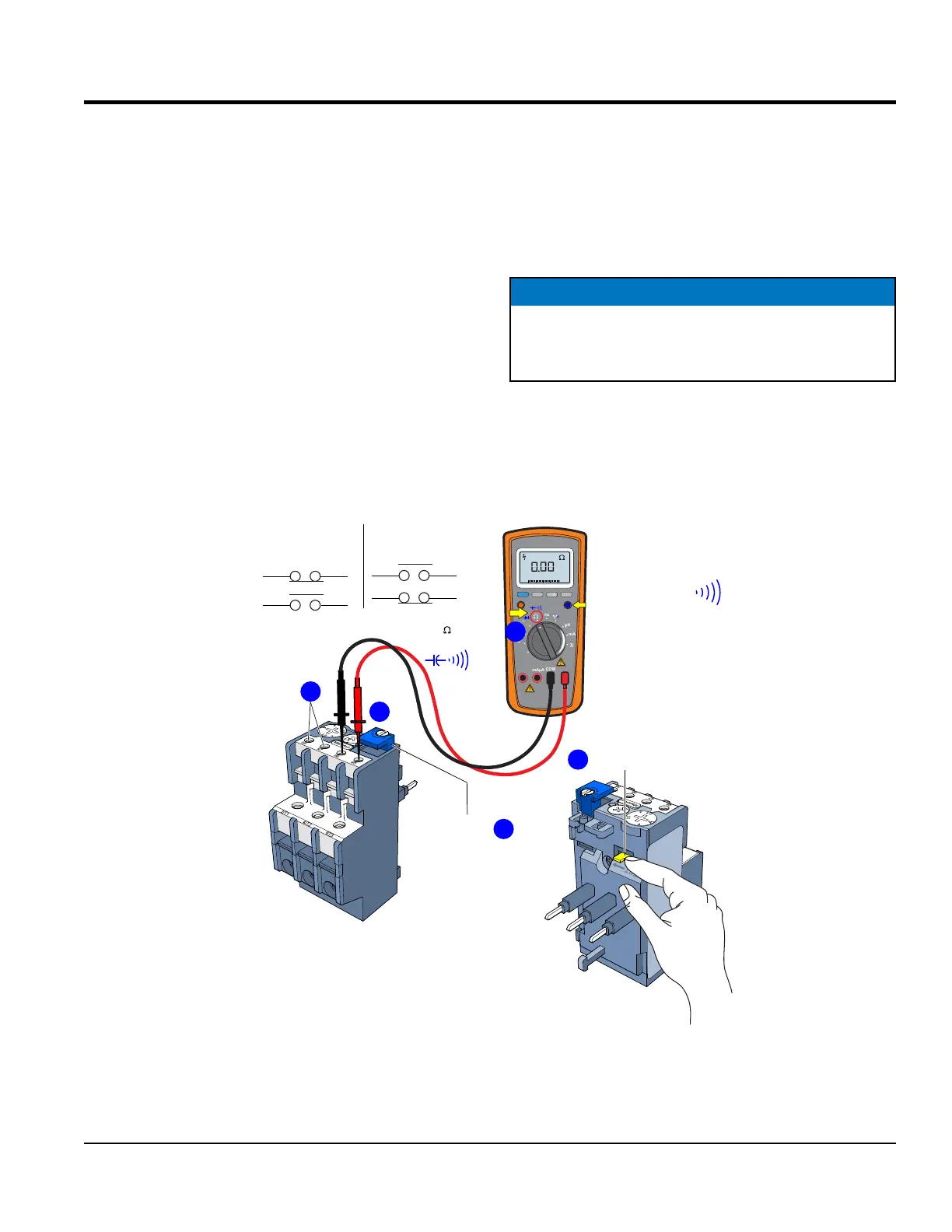 across terminals 95 and 96 on the relay and verify