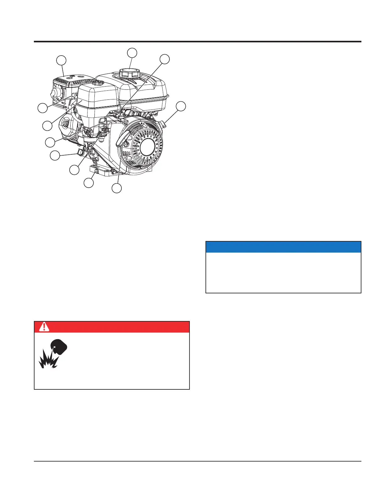 11. Muffler – Used to reduce noise and emissions. NEVER