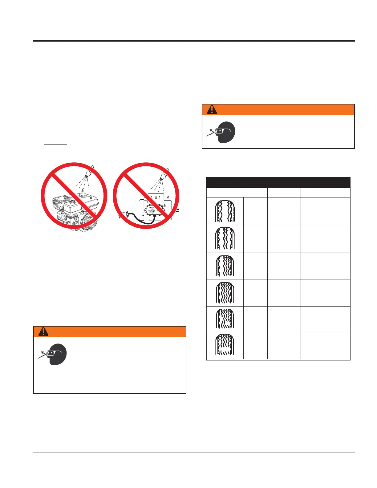 10. NEVER! pour or spray water over the engine or electric