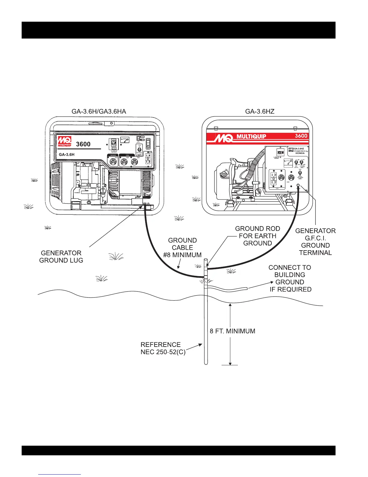 The nut and ground terminal on the generators should always be used to connect the generators to a suitable ground. The