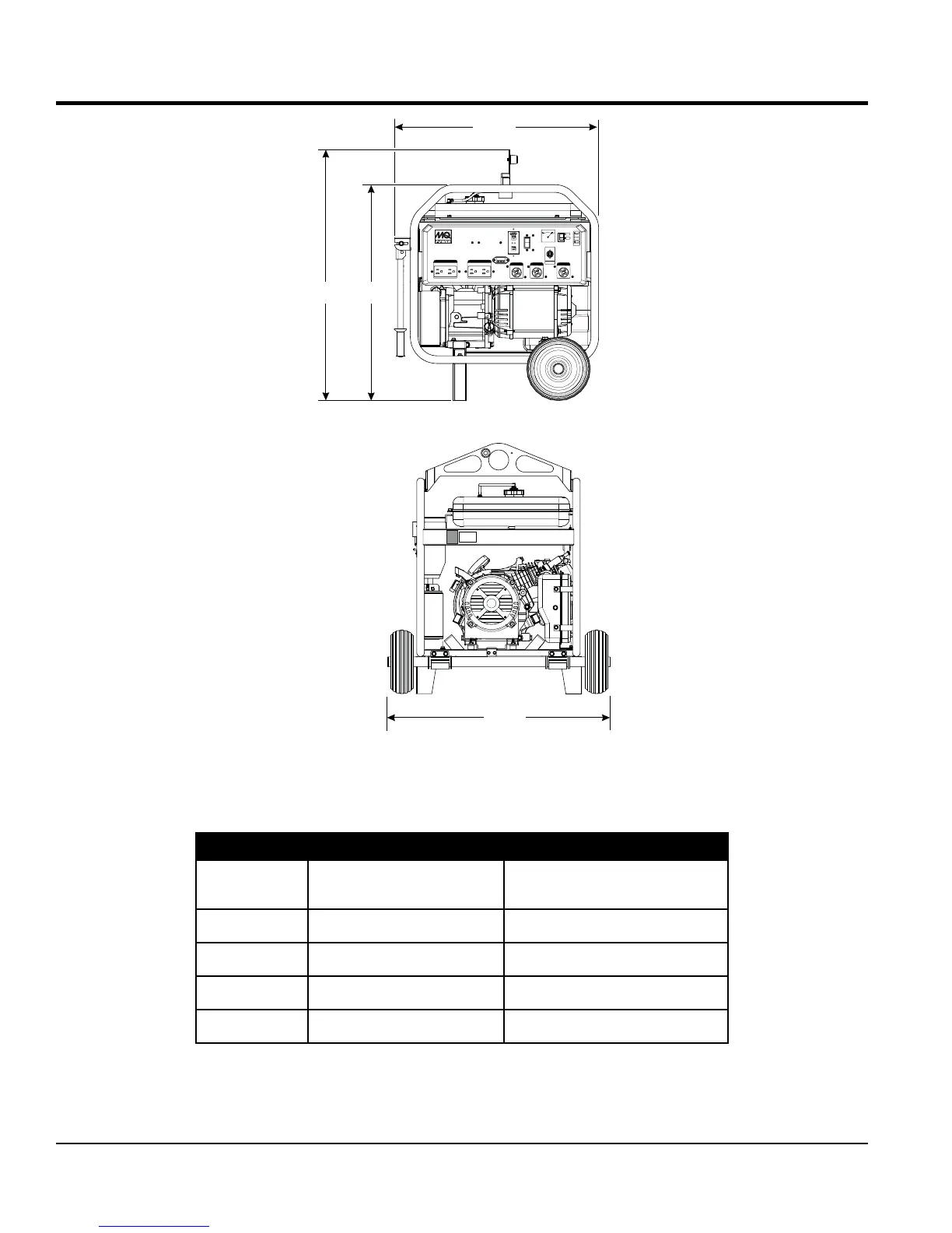MULTIQUIP GA6HR - DIMENSIONS; GENERATOR DIMENSIONS