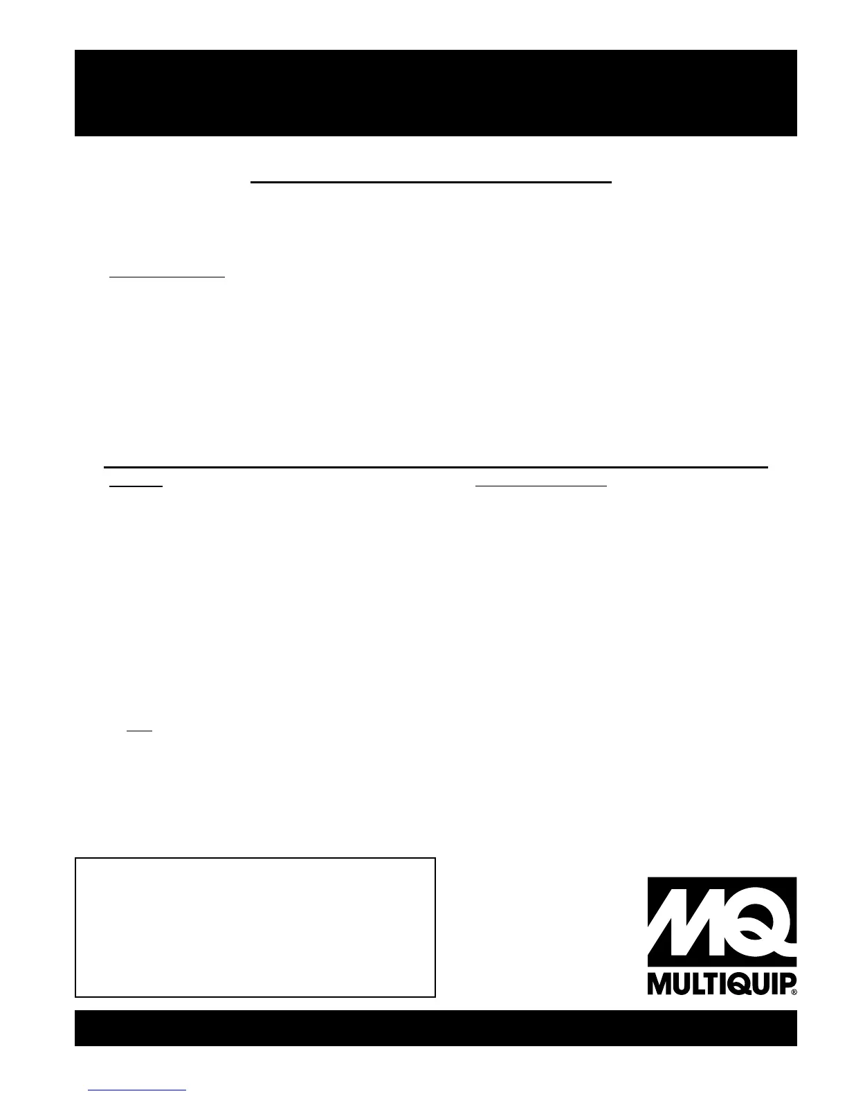 this manual are for guidance only and may not be considered as binding. Multiquip Inc. reserves the right to discontinue or change specifi cations, design or the information published