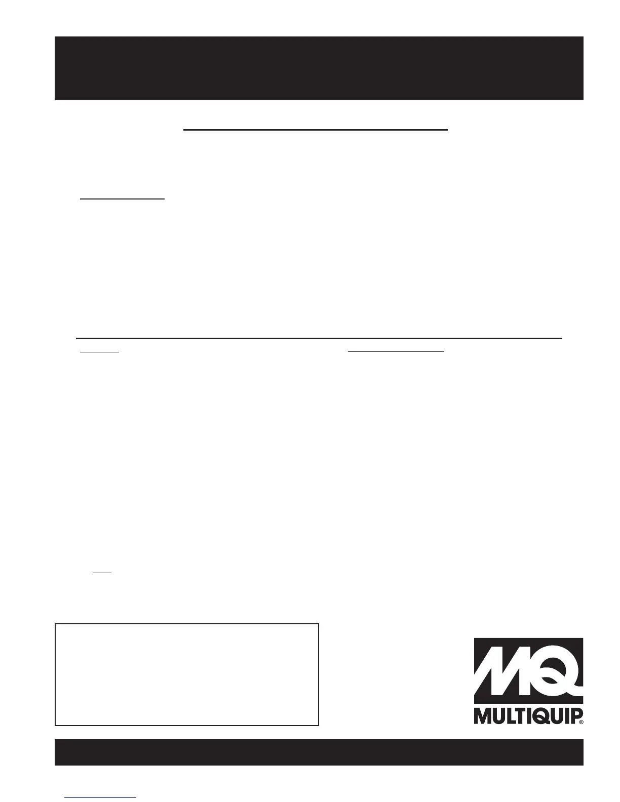 are registered trademarks of Multiquip Inc. and may not be used, reproduced, or altered without written permission. All other