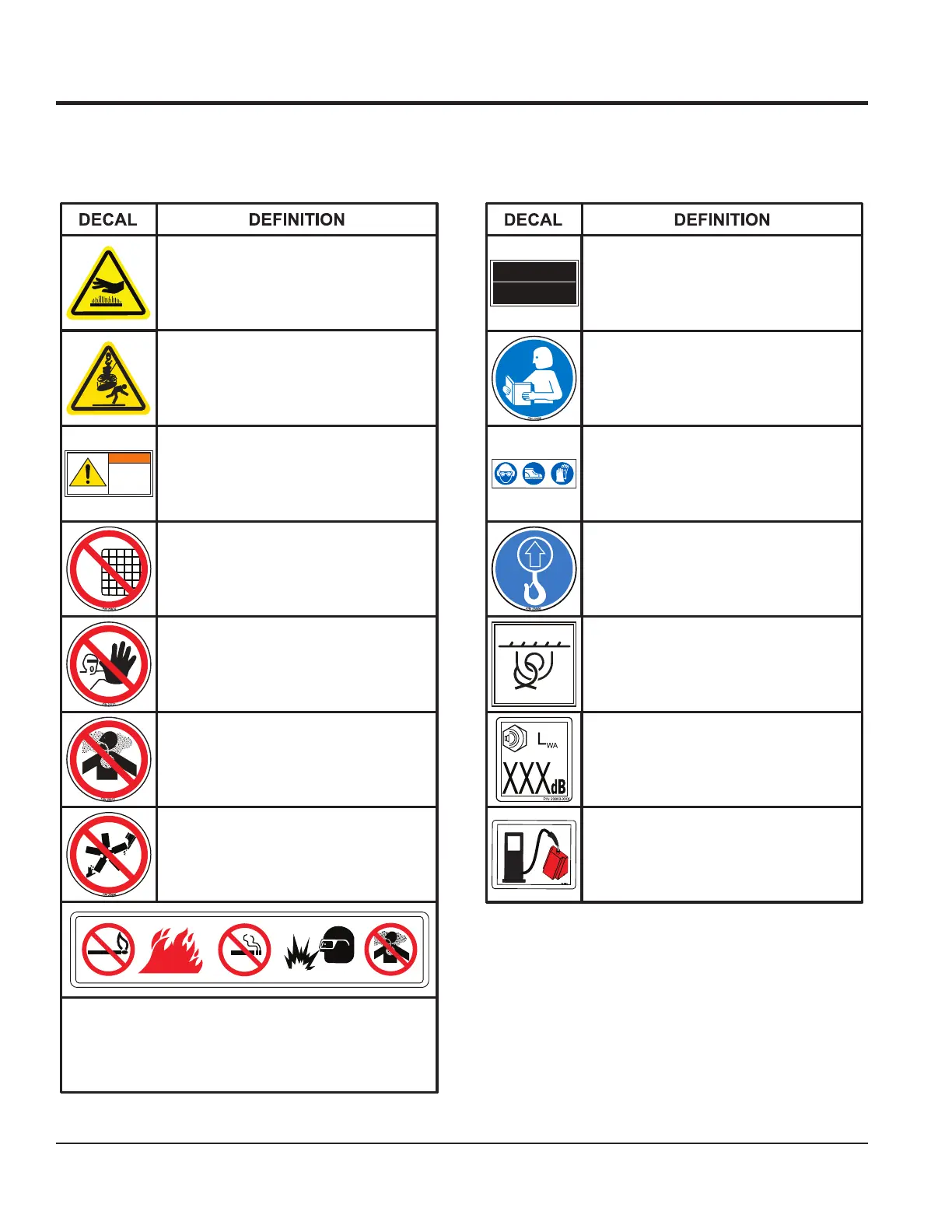 Decals associated with the safe operation of this equipment