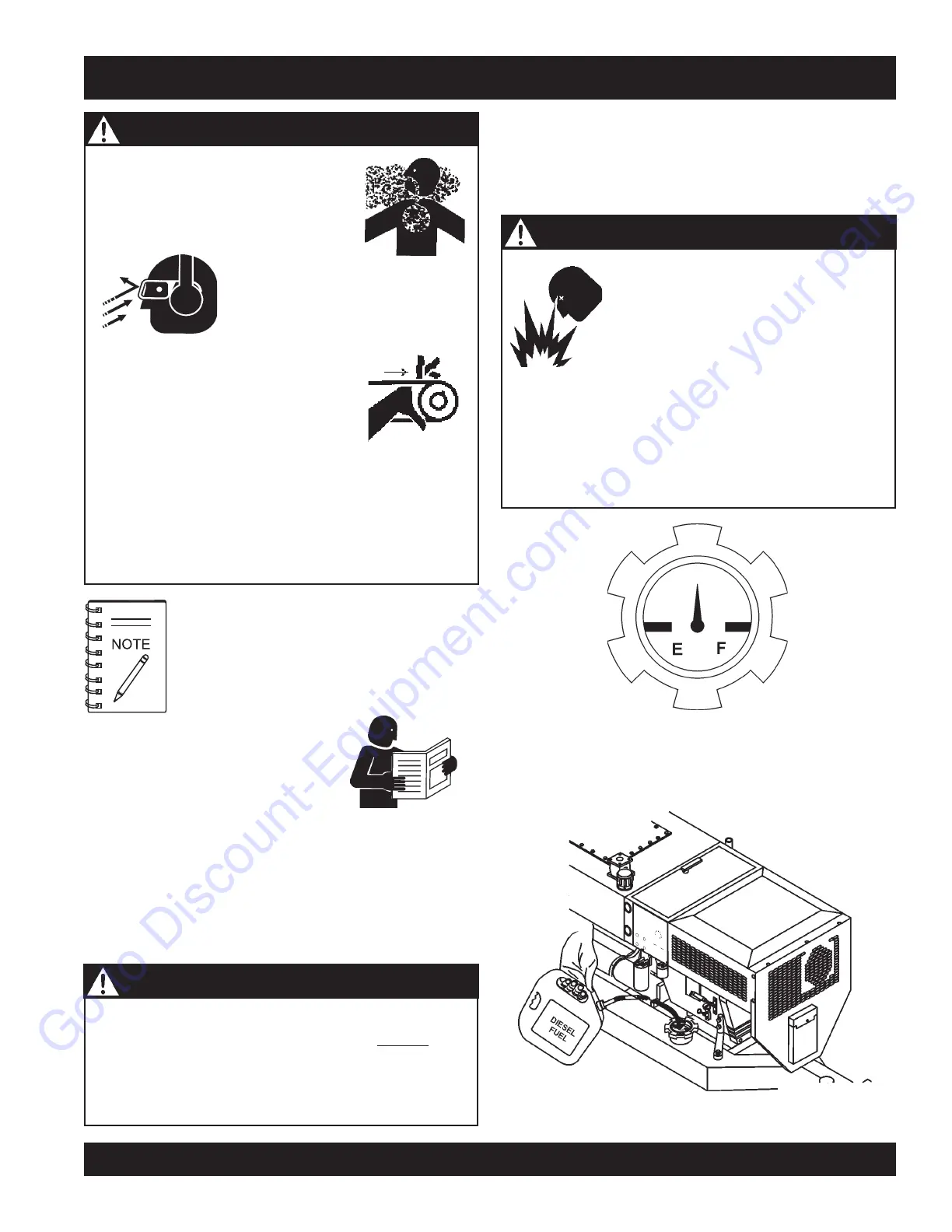 DO NOT overfill tank, since spilled fuel could ignite if it