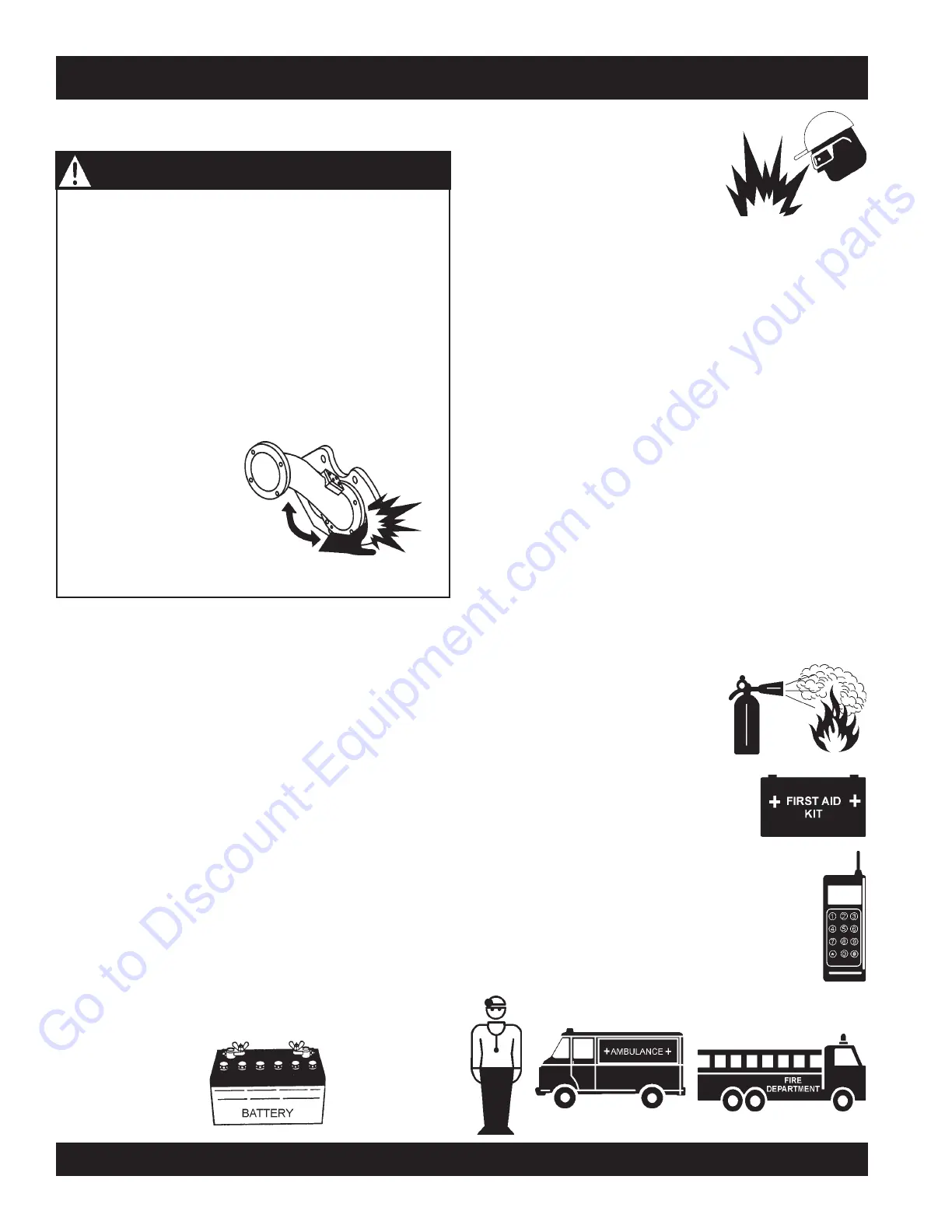 etc. The battery contains combustible gases and liquids.