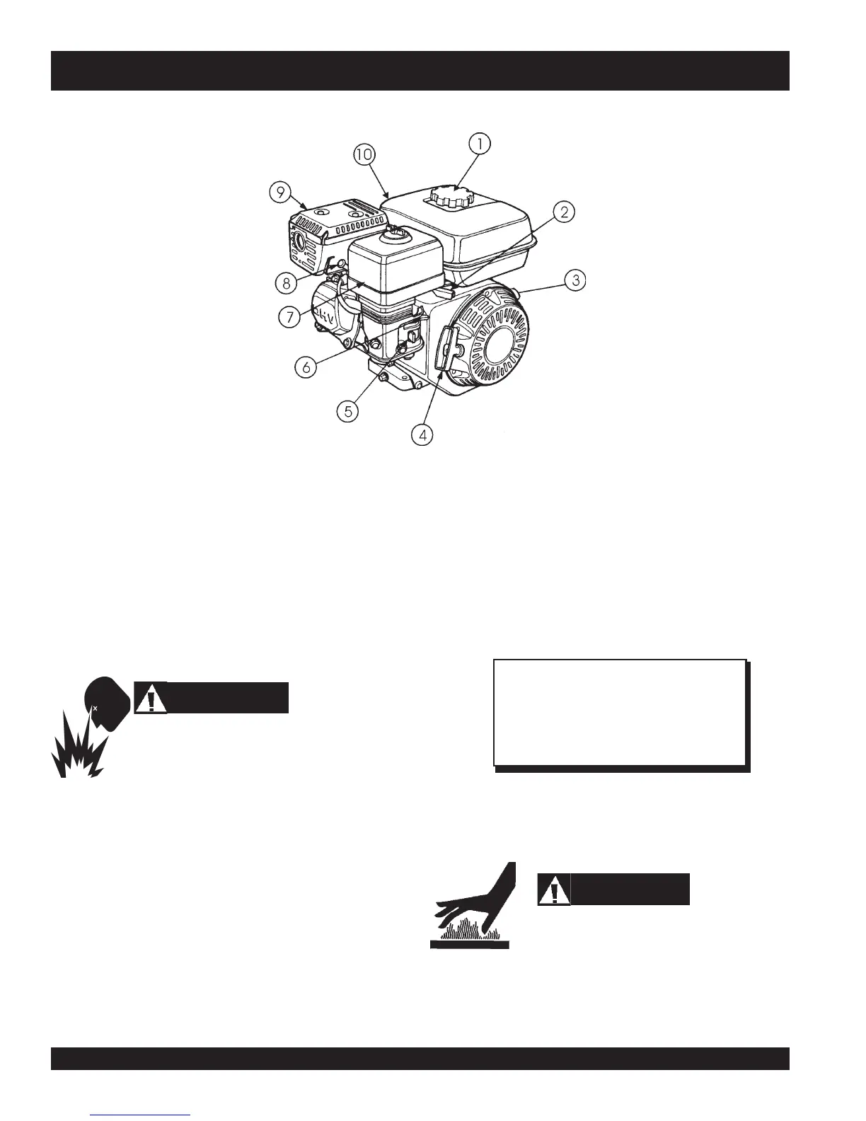 10. Fuel Tank – Holds unleaded gasoline. For additional