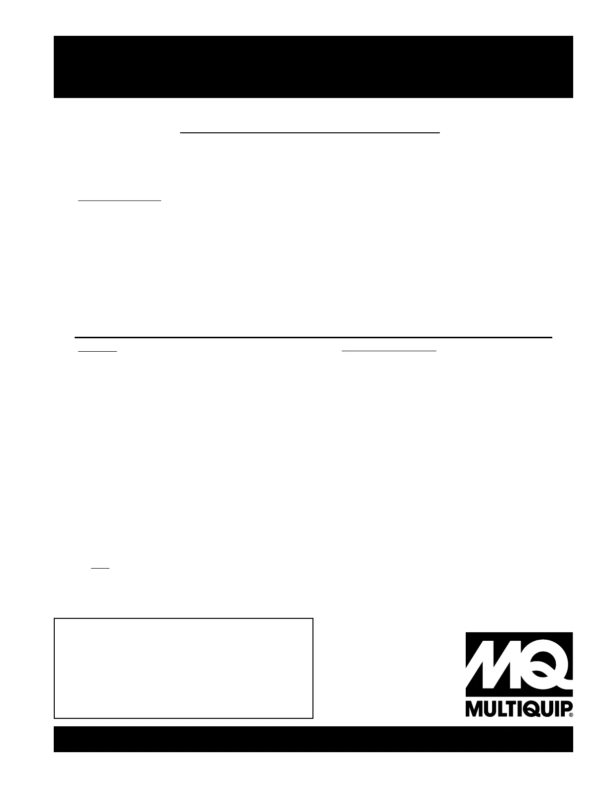 are registered trademarks of Multiquip Inc. and may not be used, reproduced, or altered without written permission. All other trademarks