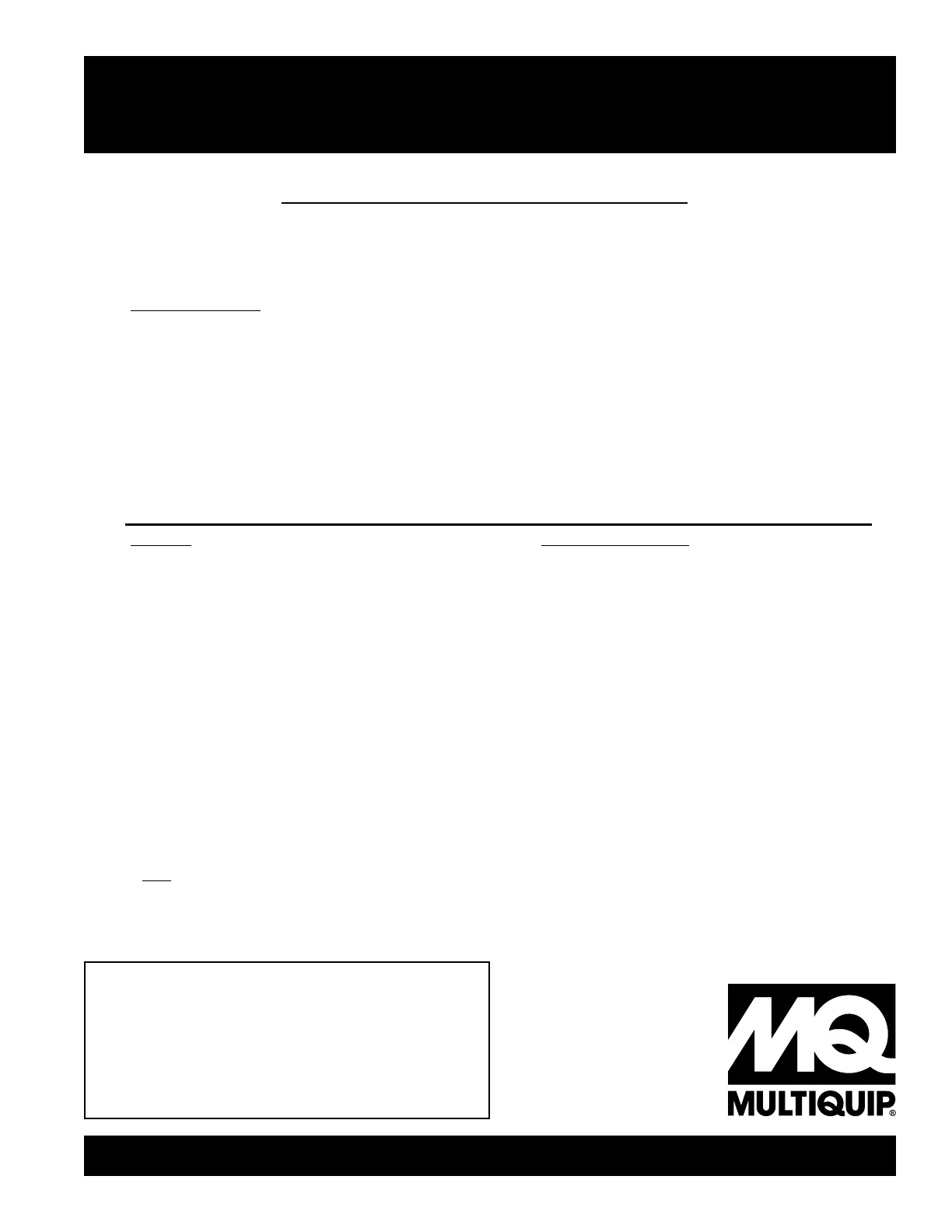 the MQ logo are registered trademarks of Multiquip Inc. and may not be used, reproduced, or altered without written permission. All other trademarks are the property