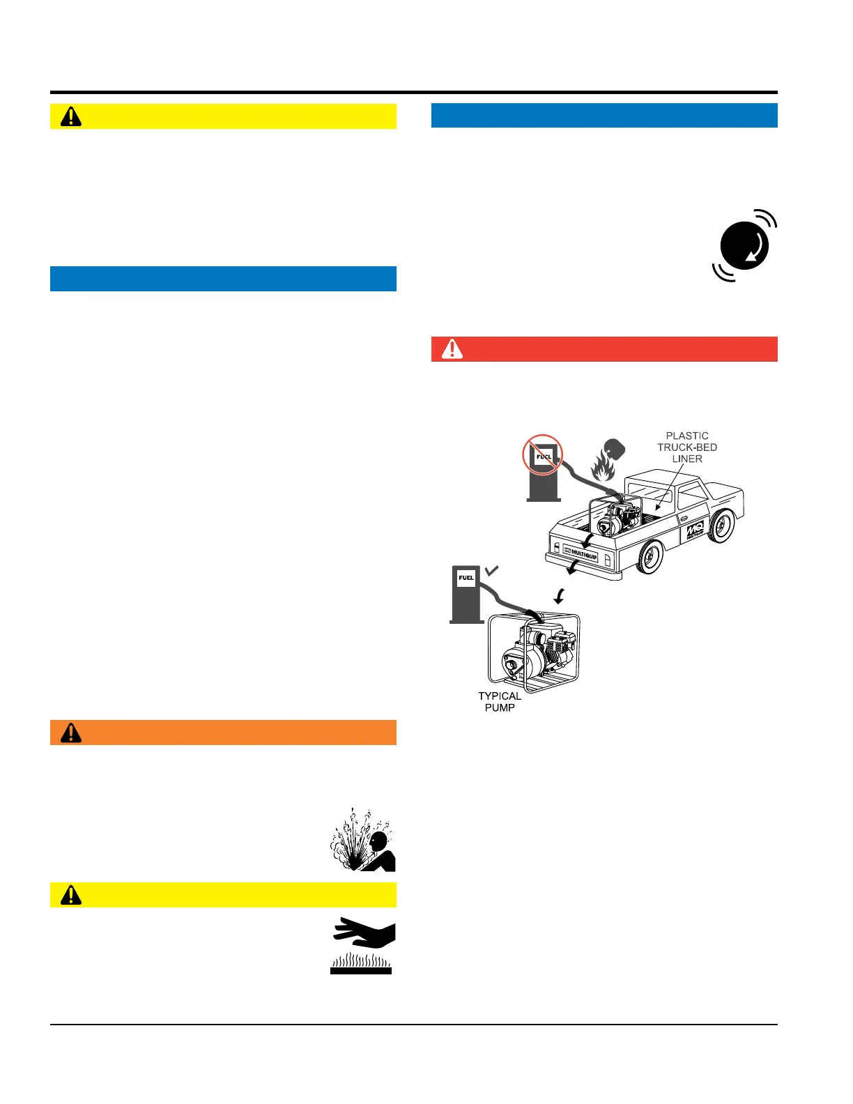 NEVER block or restrict flow from discharge hose.