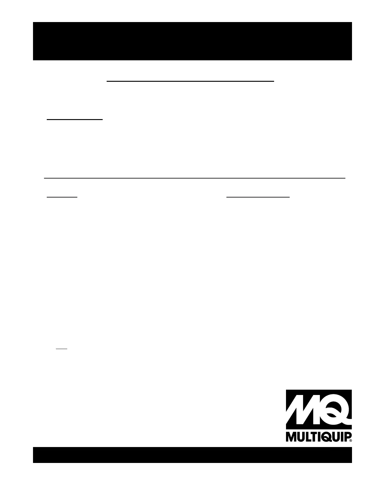 the MQ logo are registered trademarks of Multiquip Inc. and may not be used, reproduced, or altered without written permission. All other trademarks are the property