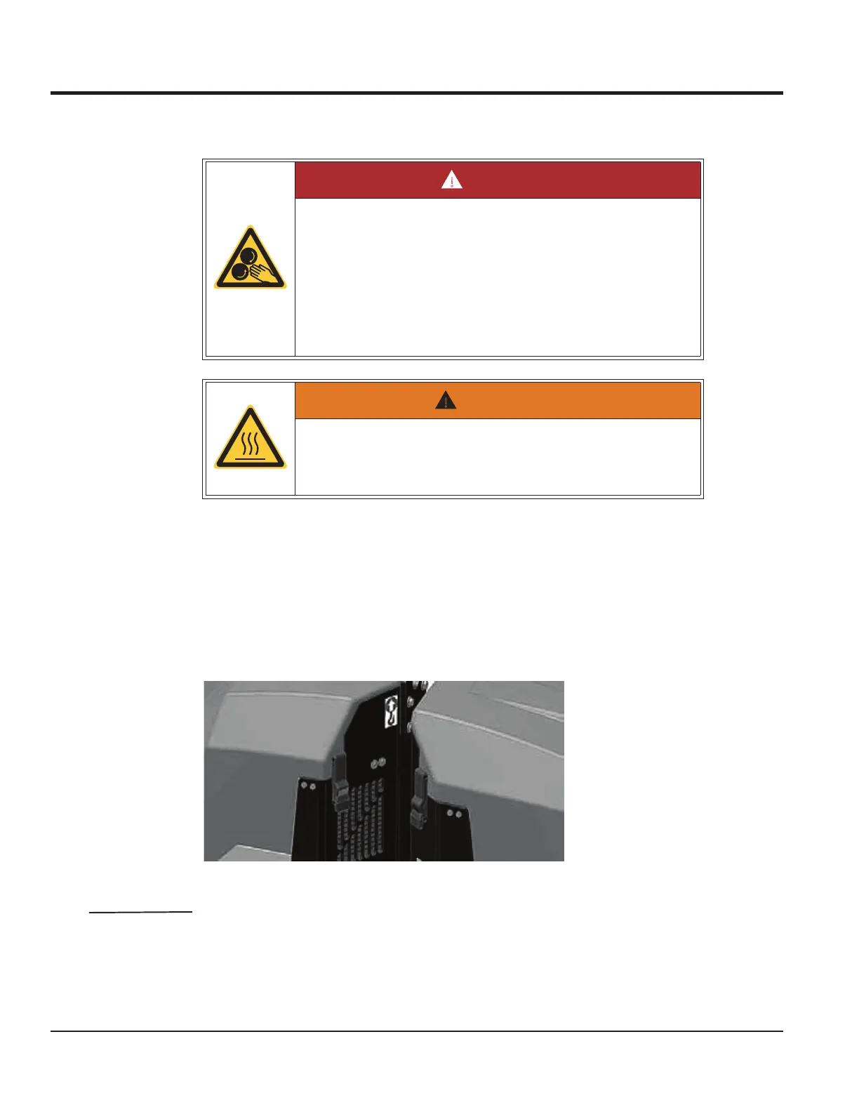 2.1 Lift the hood with slight pressure toward the center of the roller.
