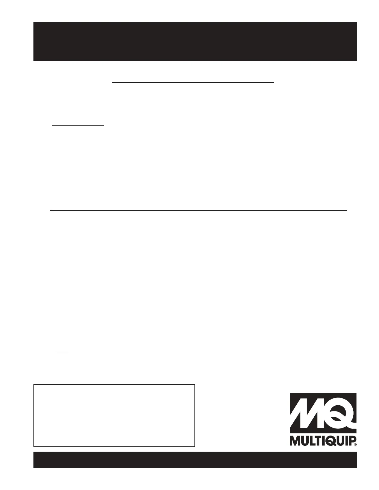 the MQ logo are registered trademarks of Multiquip Inc. and may not be used, reproduced, or altered without written permission. All other trademarks are the property