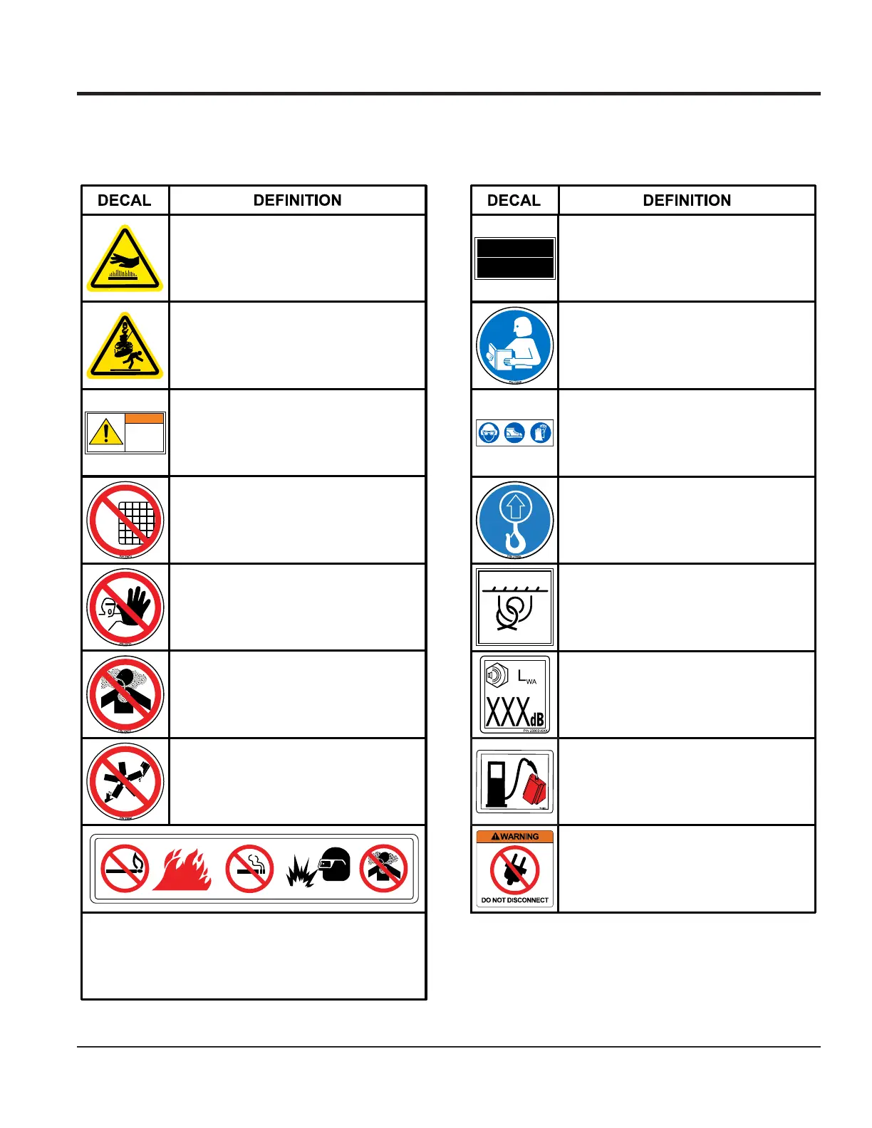 Decals associated with the safe operation of this equipment