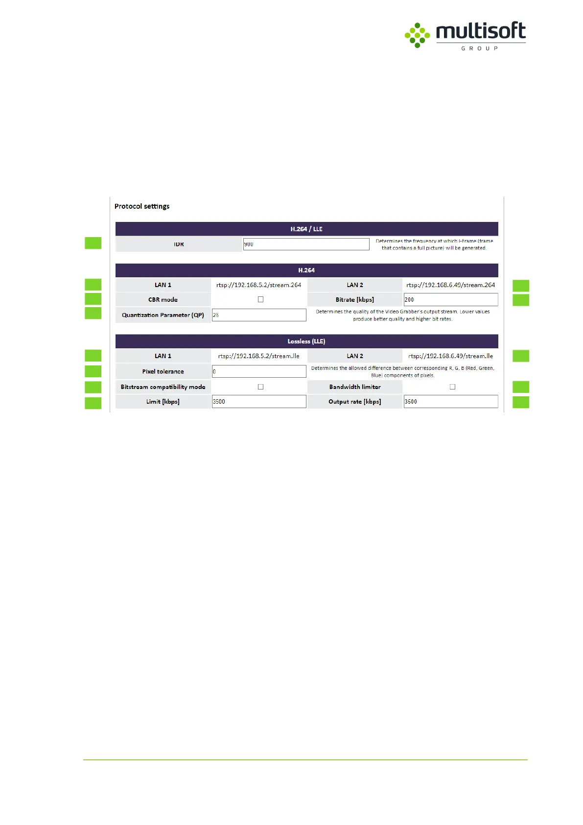 provided. Compression type is set automatically when user connects to the stream (H.264 and Lossless