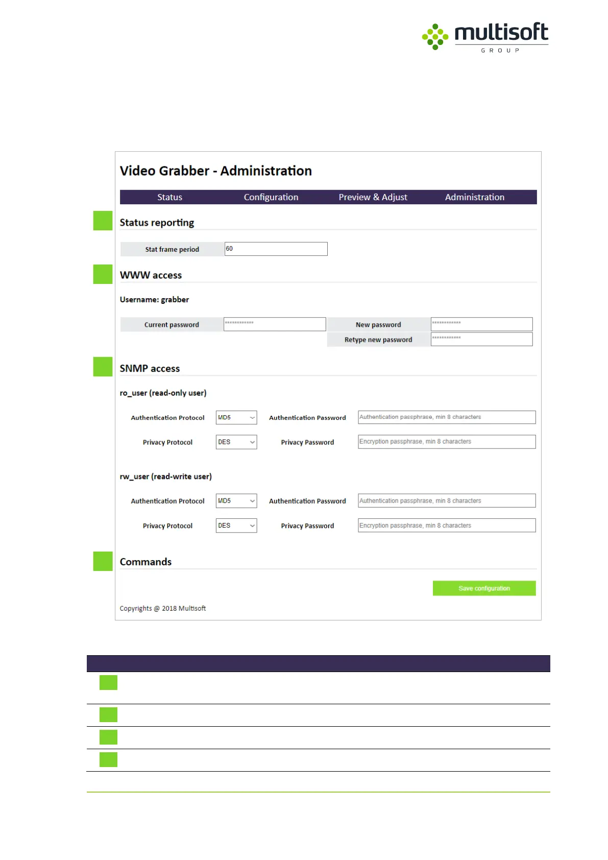 Table 28: Description of sections in the Administration page