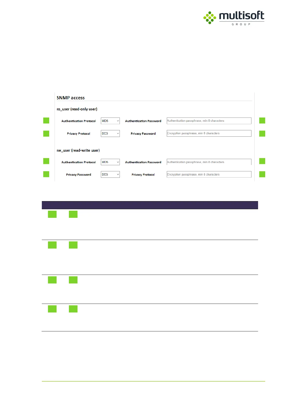 In the SNMP access section user can change the access and security details of SNMP. There are two