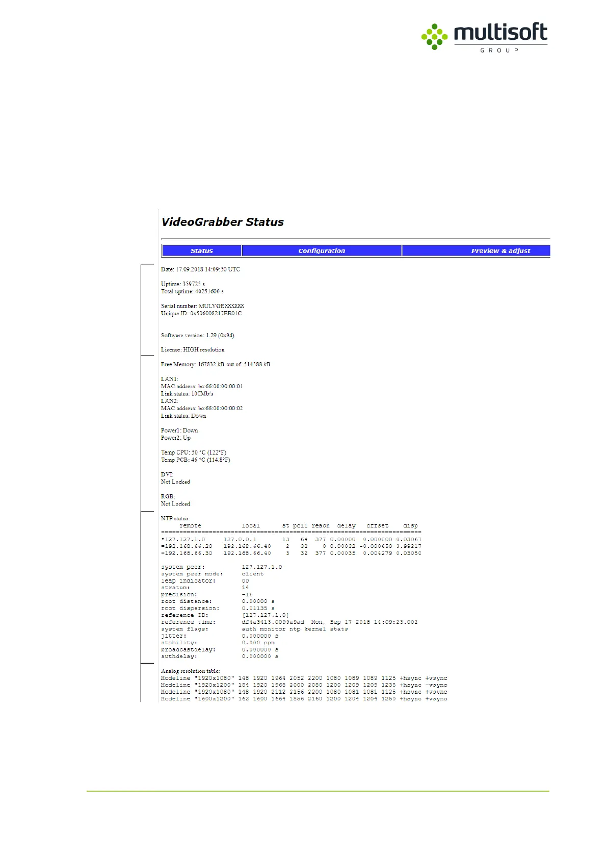 MULTISOFT VGR-1000 - 4.1. Status Page
