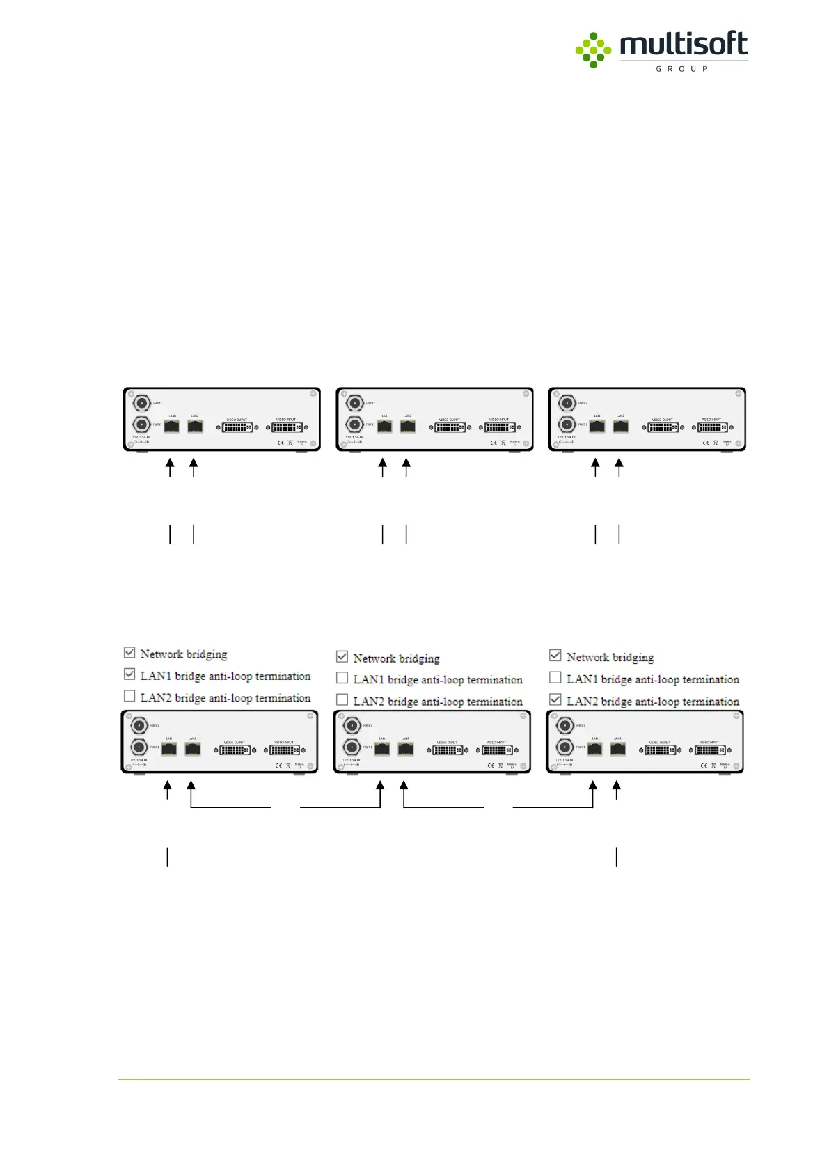 The LAN1 bridge anti-loop termination and LAN2 bridge anti-loop termination settings are set so that