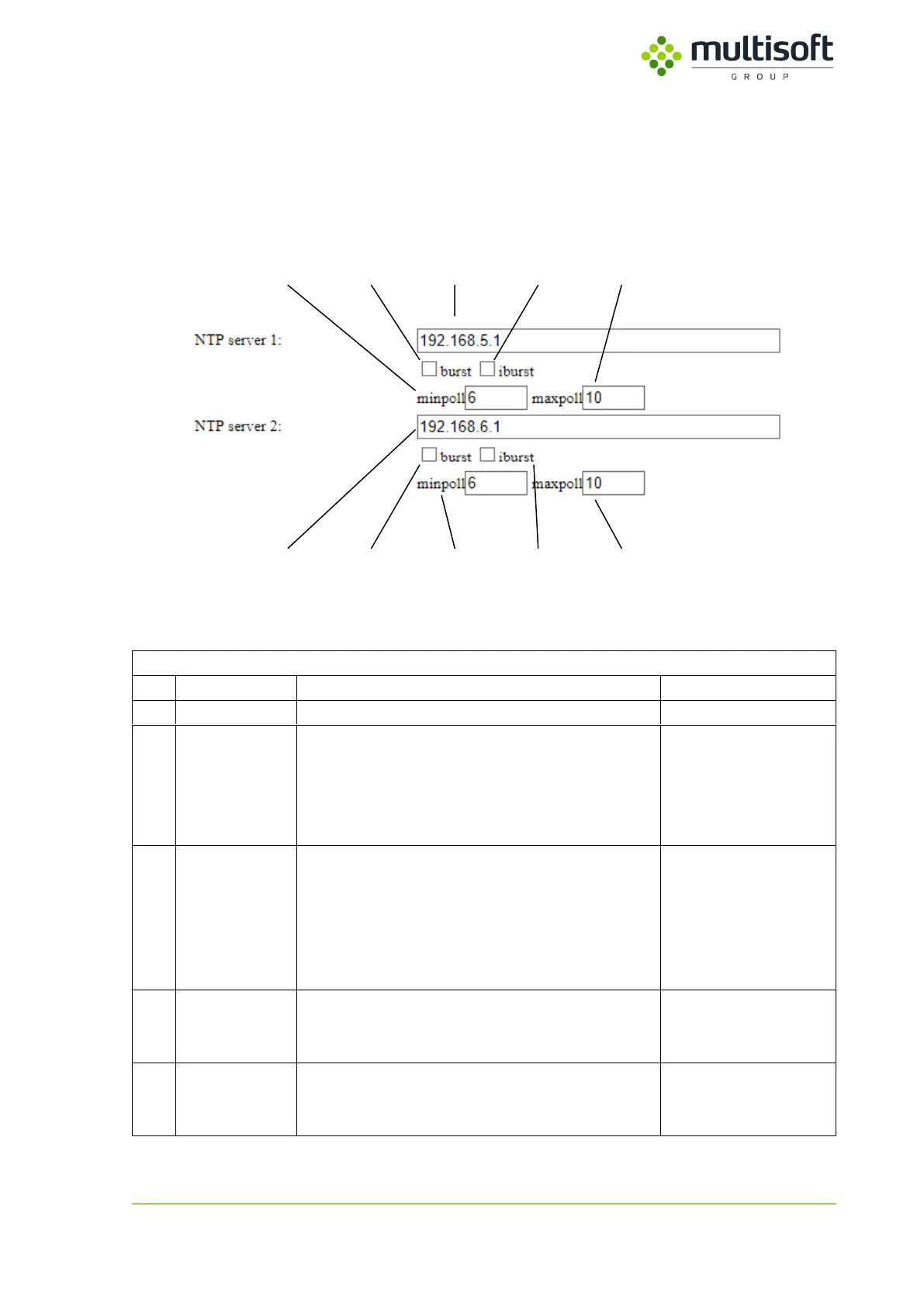 Figure 28: NTP relate settings on the Configuration page.