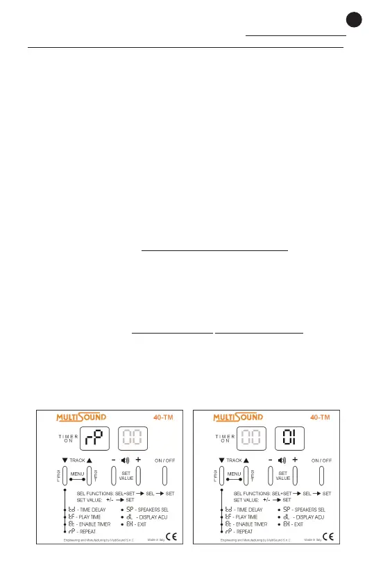 3. Premere il tasto SET. Impostare il valore 1 per attivare il repeat. Imposta-