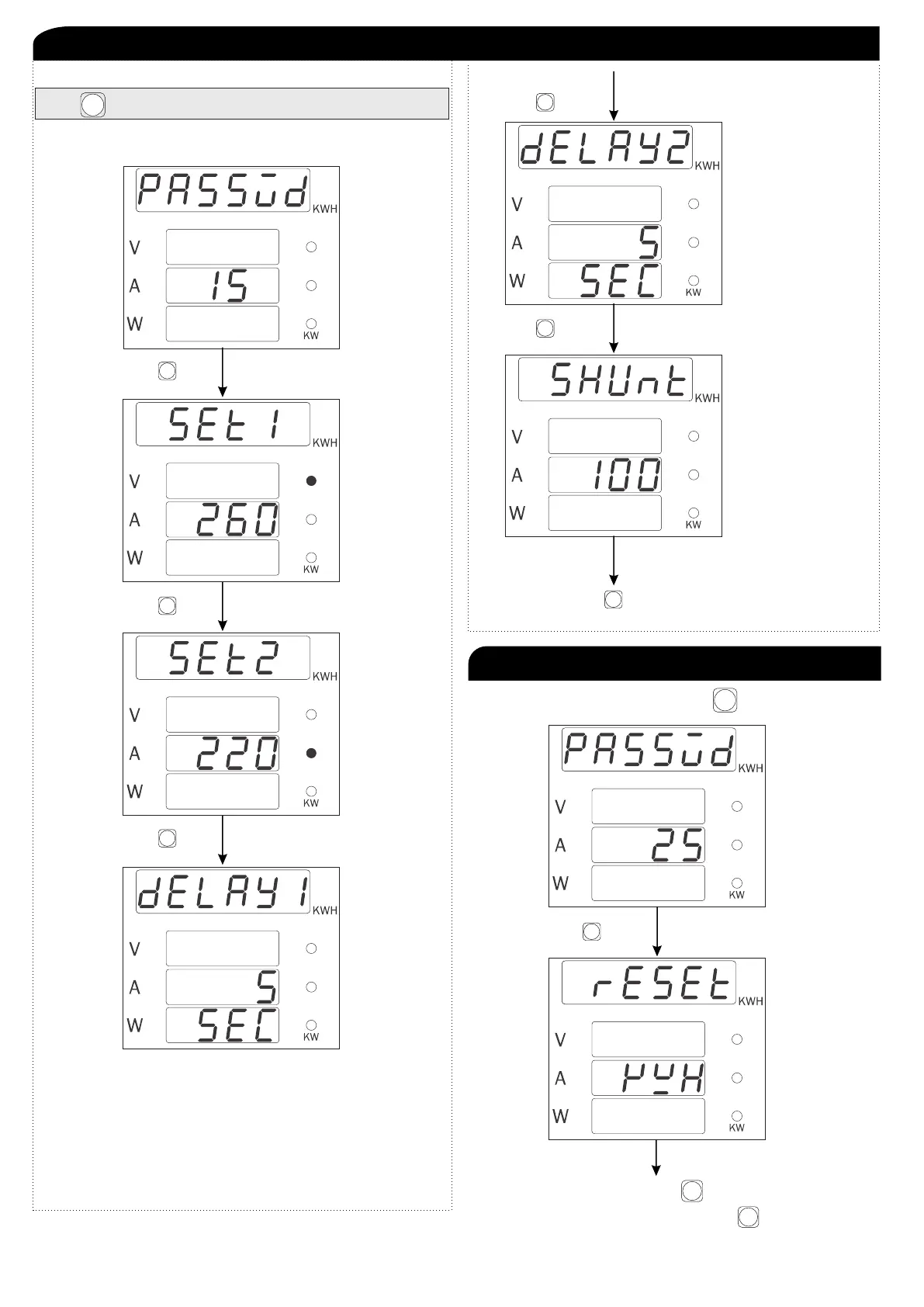 MULTISPAN MFM 14DC - Parameter Setting and Reset; Parameter Setting; KWH Reset Procedure