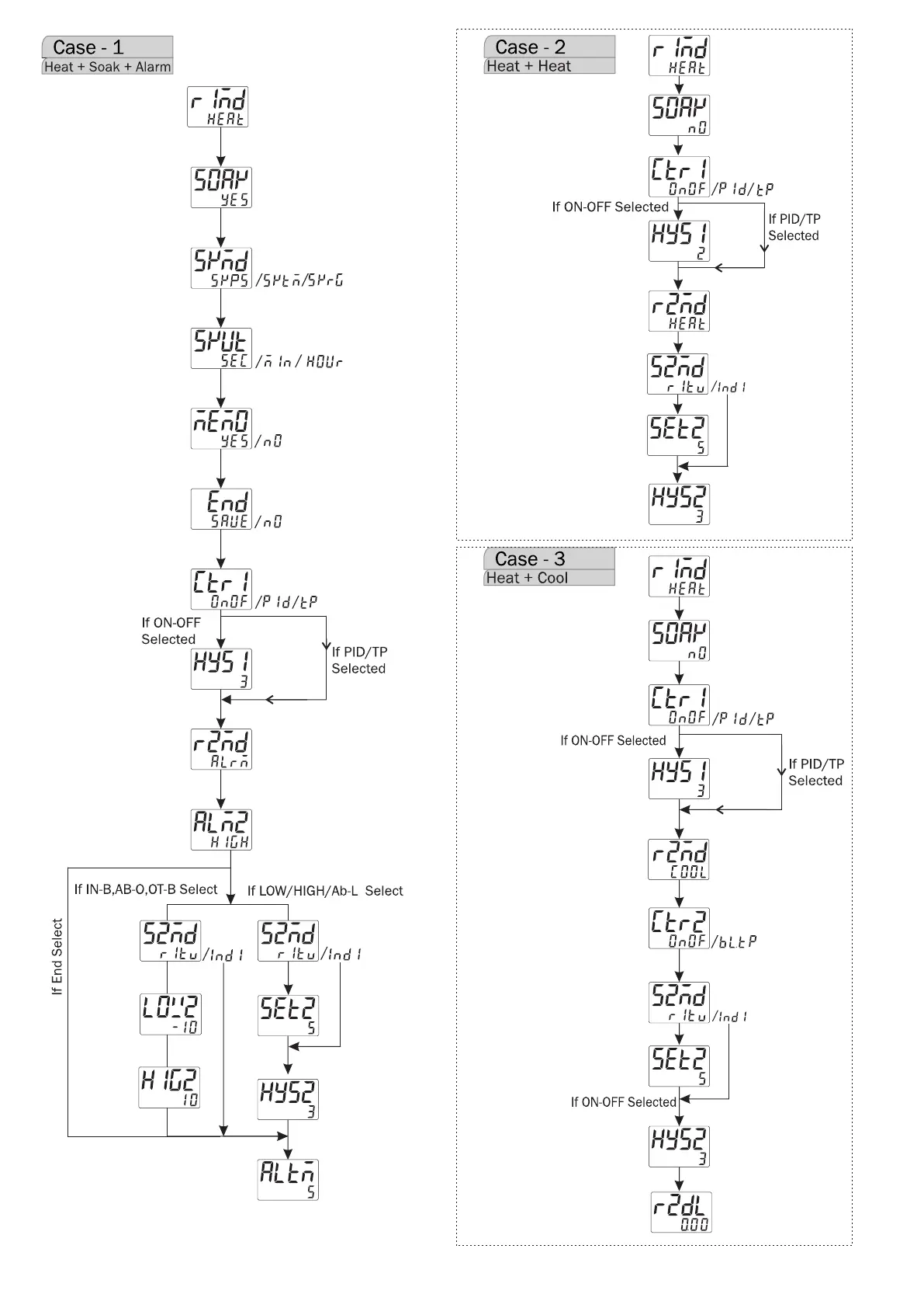 MULTISPAN UTC-2202G - Case - 1 Heat + Soak + Alarm; Case - 2 Heat + Heat; Case - 3 Heat + Cool