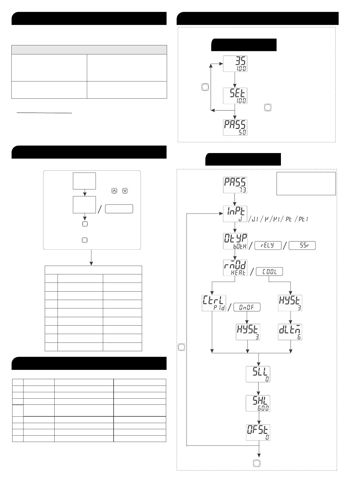 Range for J, K, PT100 Range for J.1,K.1,PT.1