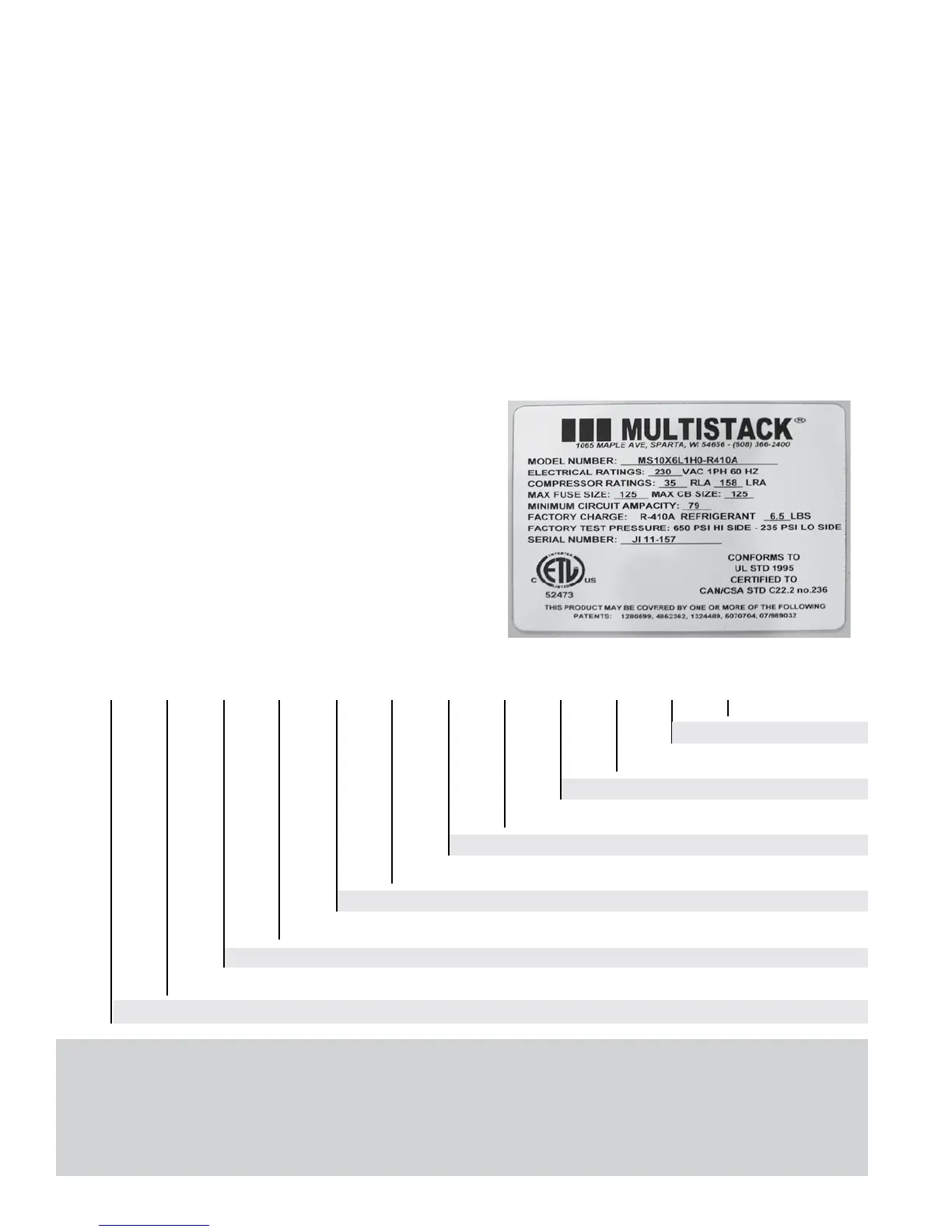 Multistack MS030XC - Unit Identification and Nomenclature; Unit Nameplate; Model Number Nomenclature