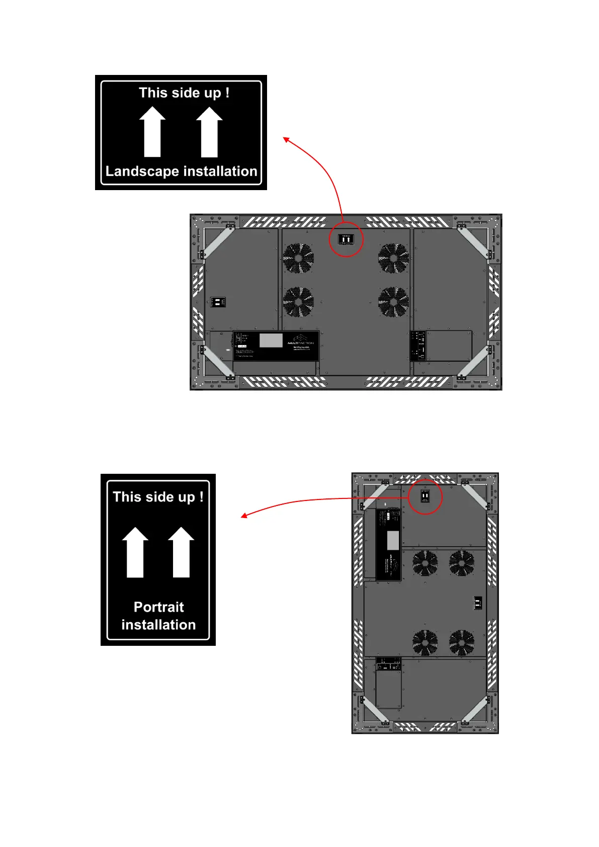Mounting position in portrait orientation to have data connectors downward.