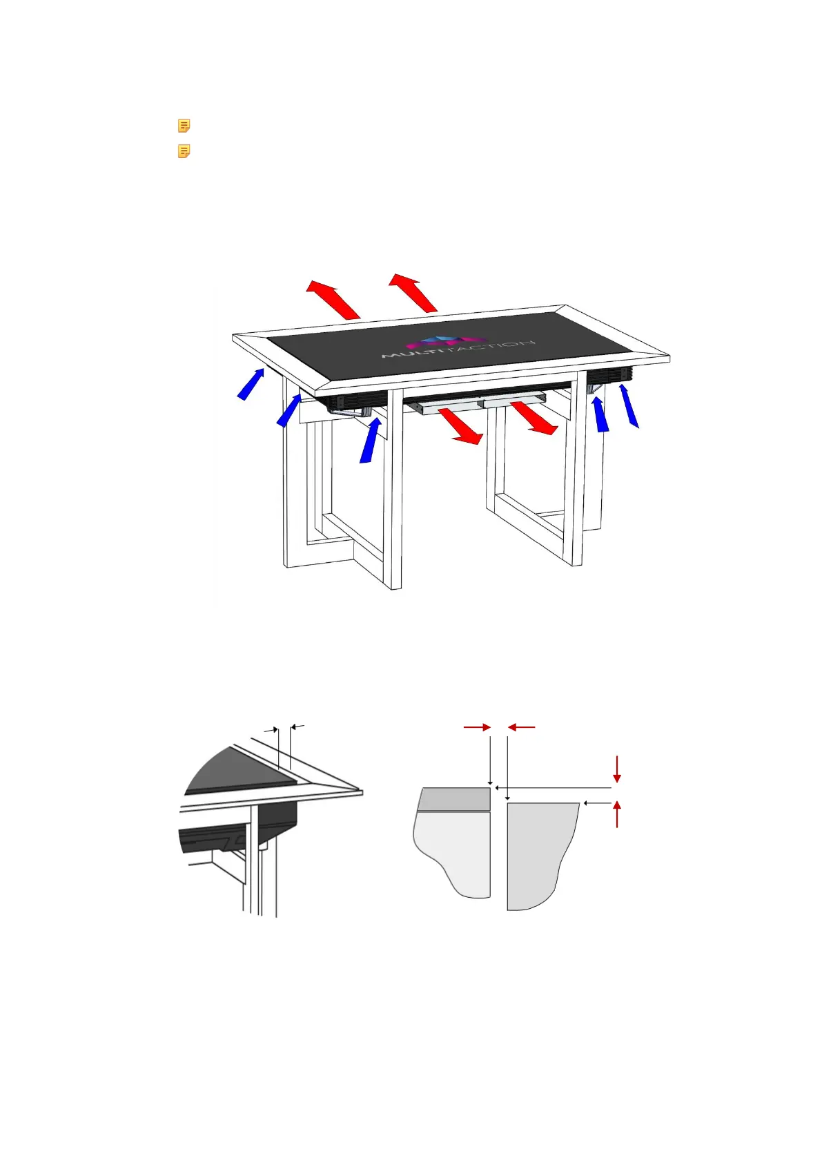 surrounding table surface, do not exceed 2mm. The table should protect the edge of the display.