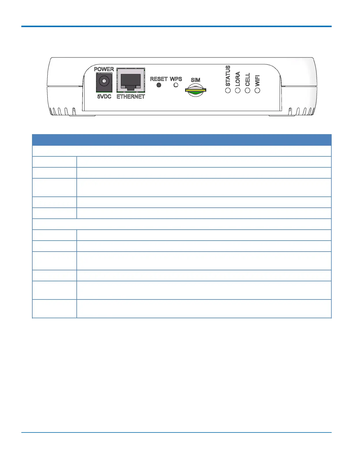 Reset Reset button. Reboots device or restores factory defaults. Refer to Resetting the Device for