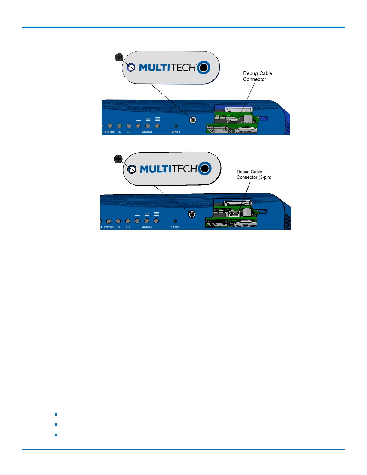 b. If you have the 3-pin connector, connect the 3-pin cable to the debug connector.