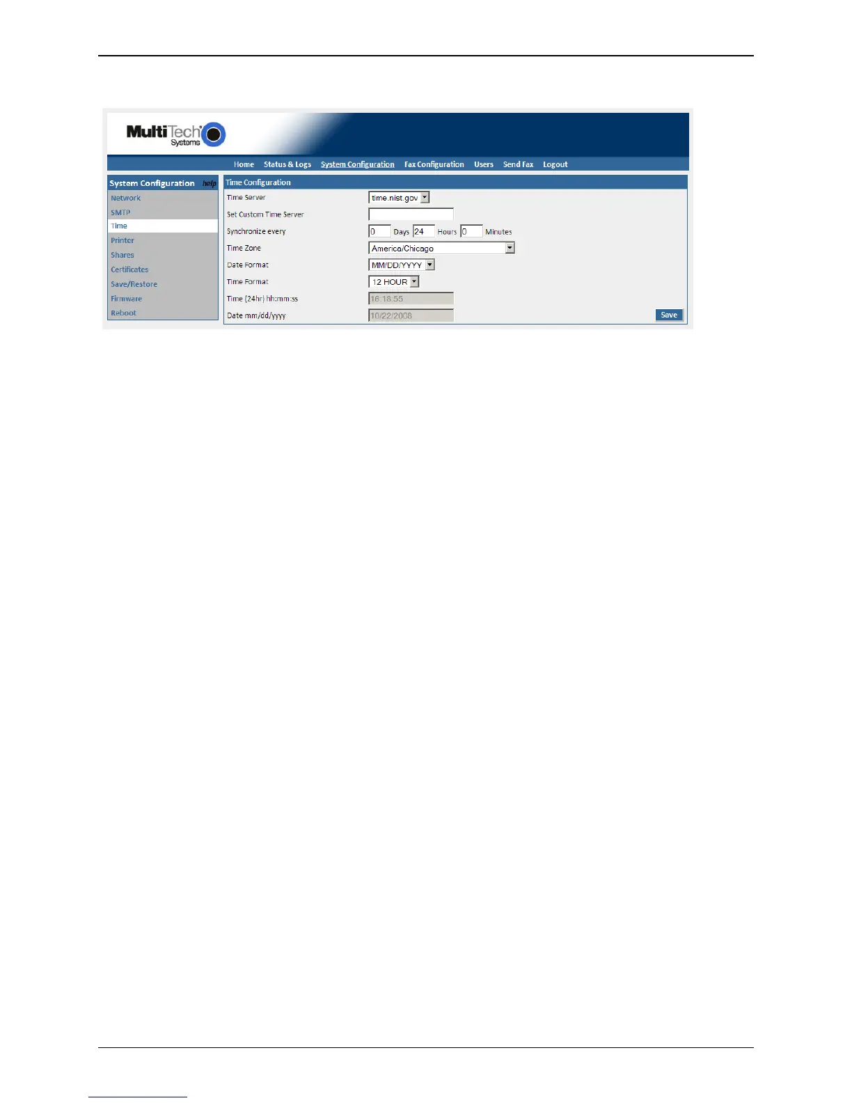 Correct time settings are important for logging and verification purposes. This section allows you to