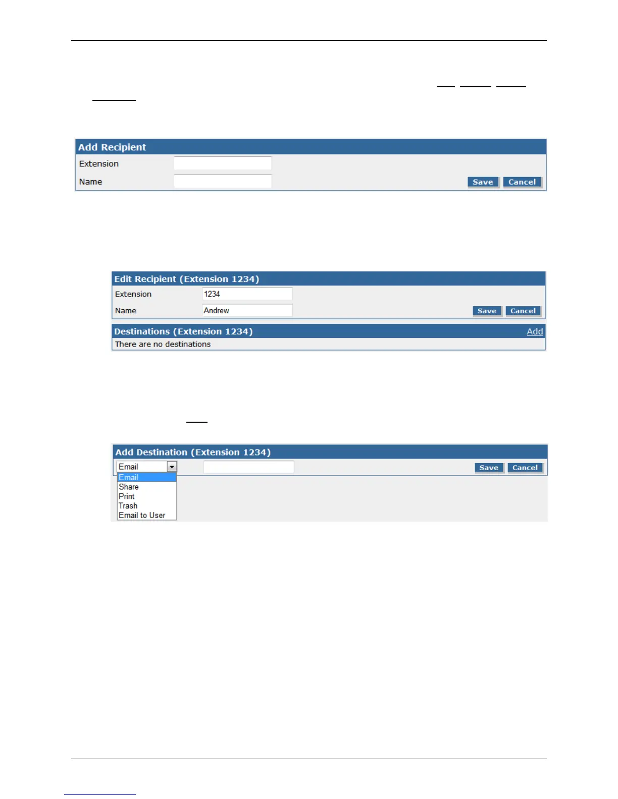 This will display a list of inbound recipients. There are four action links available: Add