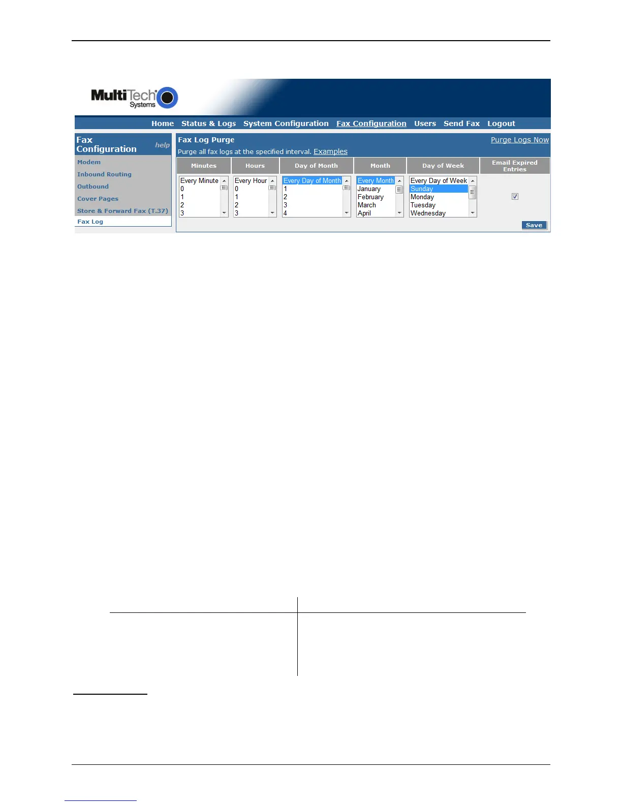 Examples of Fax Log Purge Settings