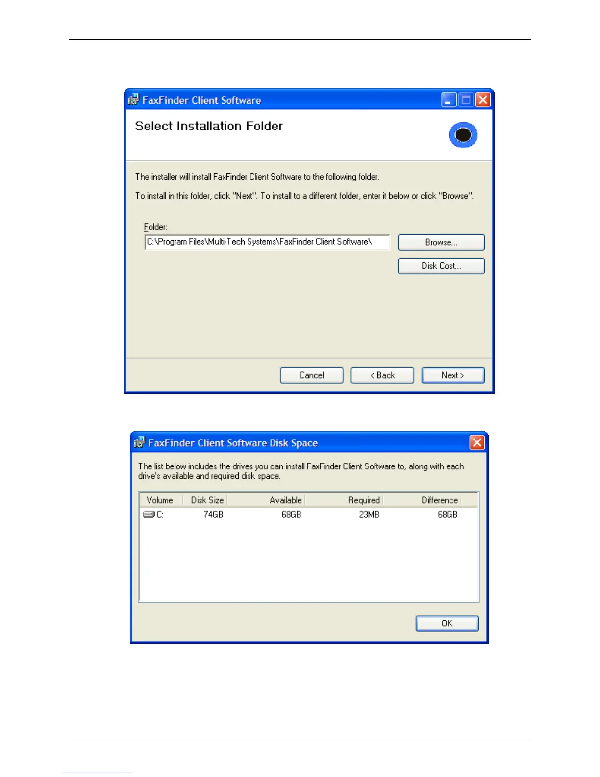 C. At the Select Installation Folder screen, browse to the desired file location for the FaxFinder