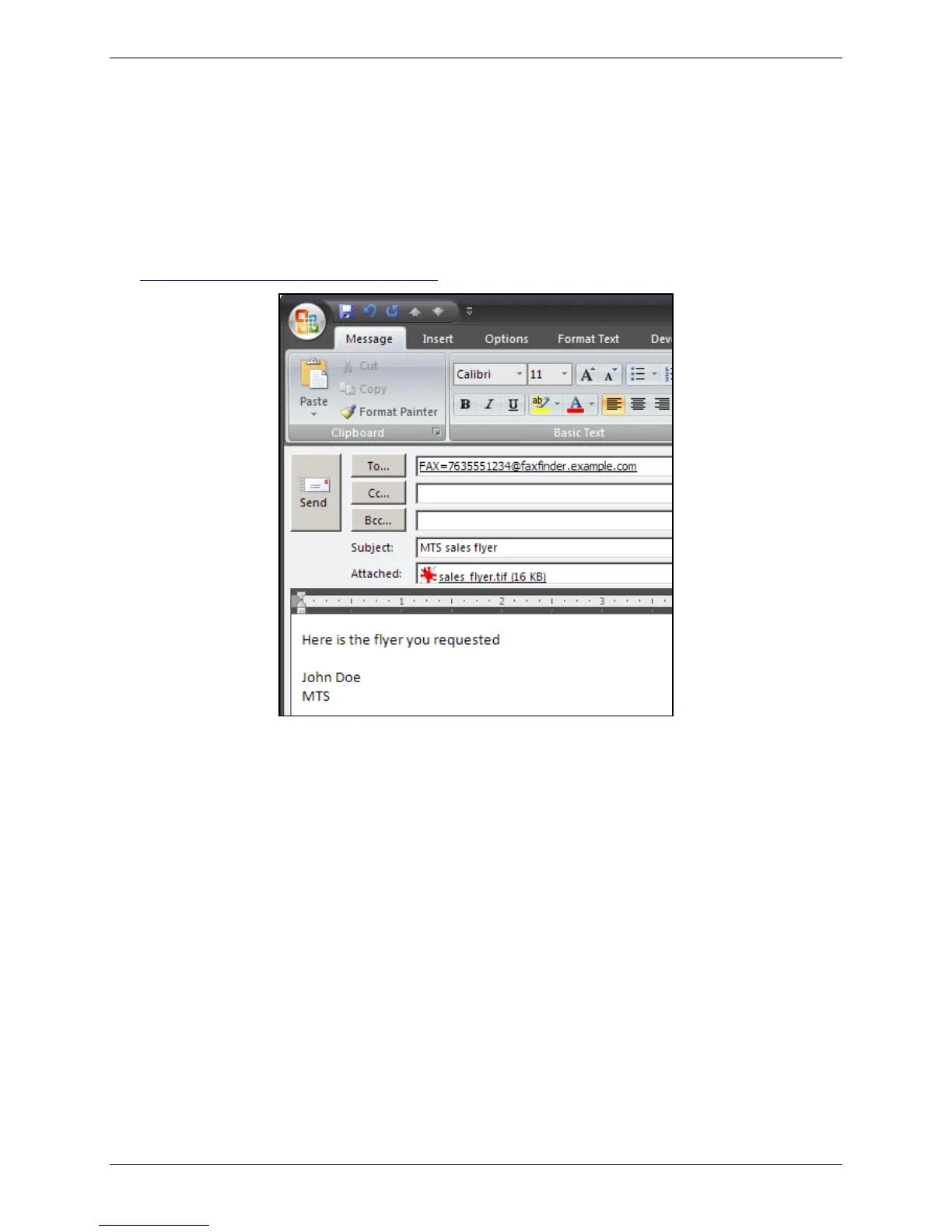 You can send an email as a fax using the T.37 format in the To field in Microsoft Outlook. You will need